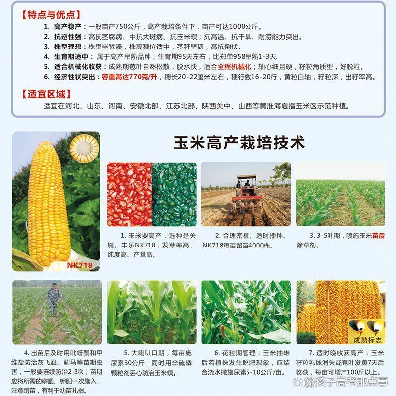 了解了 NK718 的优势后,接下来就是实际种植环节了。不同地区的气候、土壤条件不同,种植要点也有所差异,下面就为大家详细介绍黄淮海夏玉米区和西南春玉米区的种植攻略。