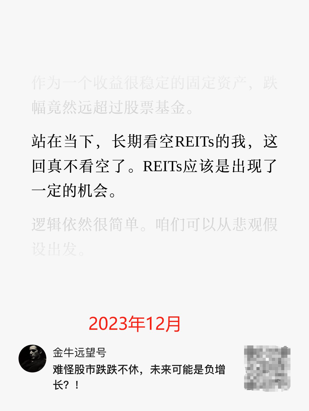 每一个理由看上去都非常有道理。但在2023年底,我明确表示应该看多REITs了。