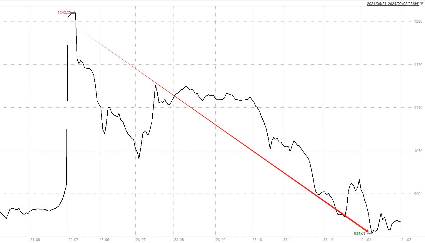 2022下半年到2023年,A股REITs出现了一波暴跌,跌幅接近30%。下图是REITs股价指数。