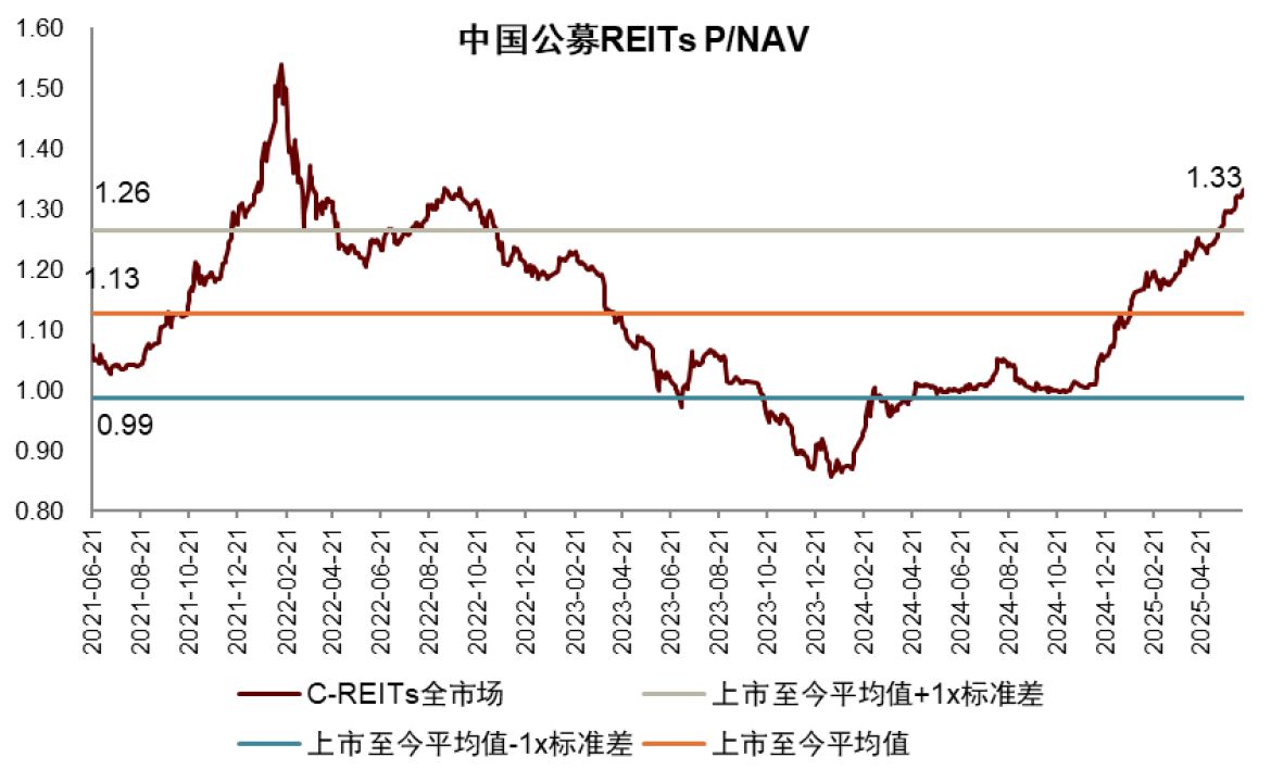 另一方面,REITs的P/NAV(相当于股票的PB)理论上应该在1.1左右。但最新值高达1.33,处于历史极高水平。